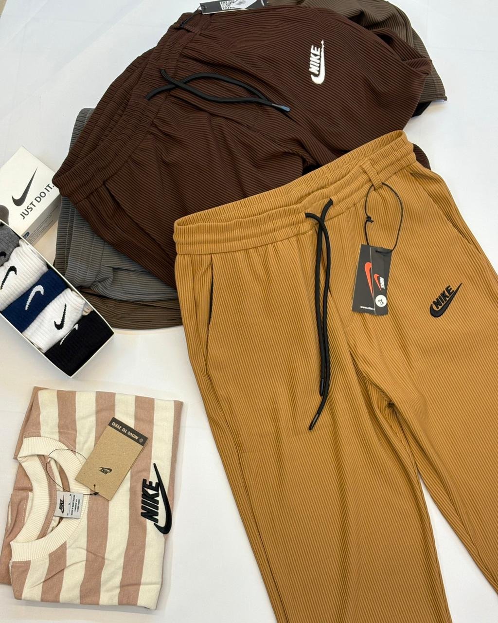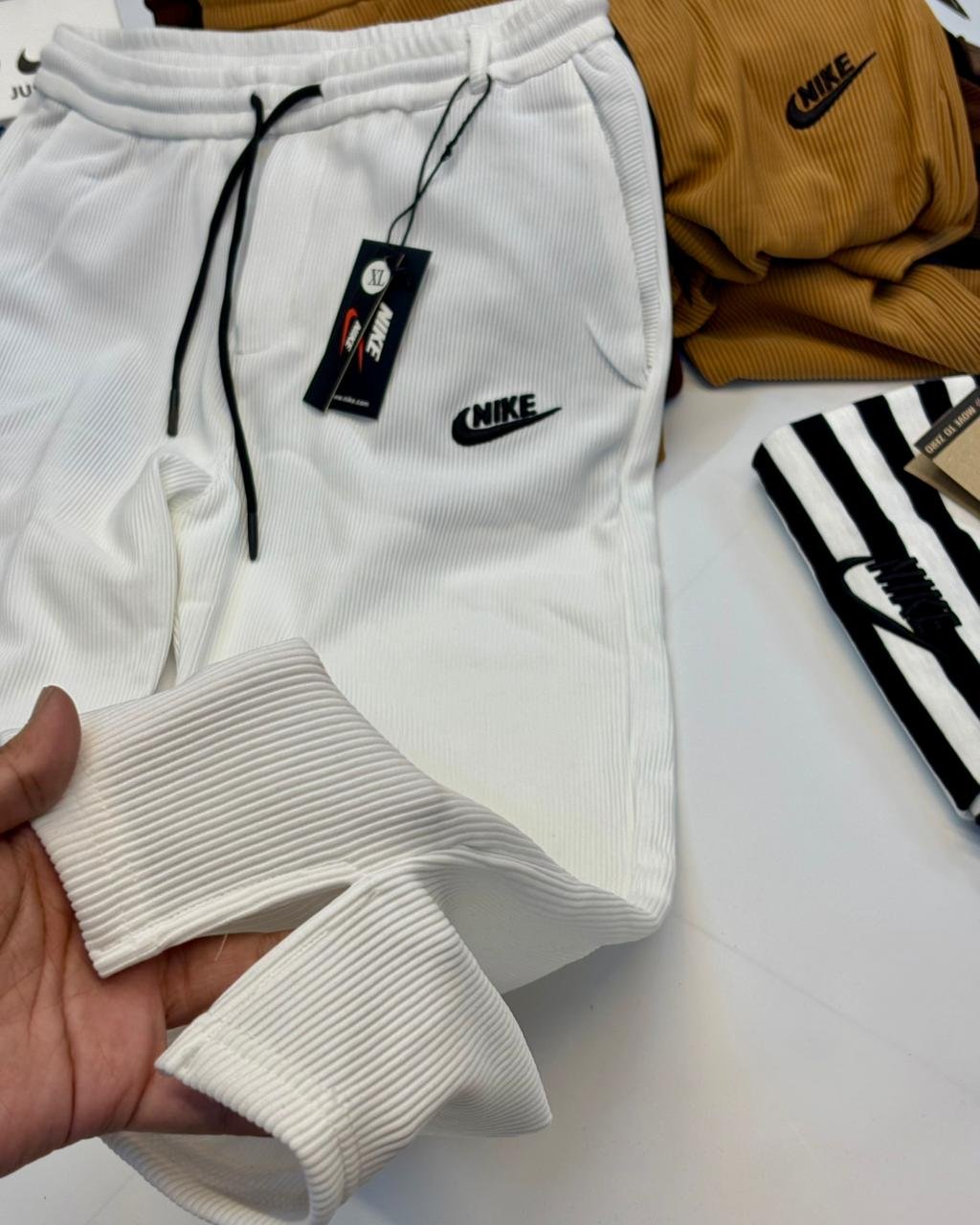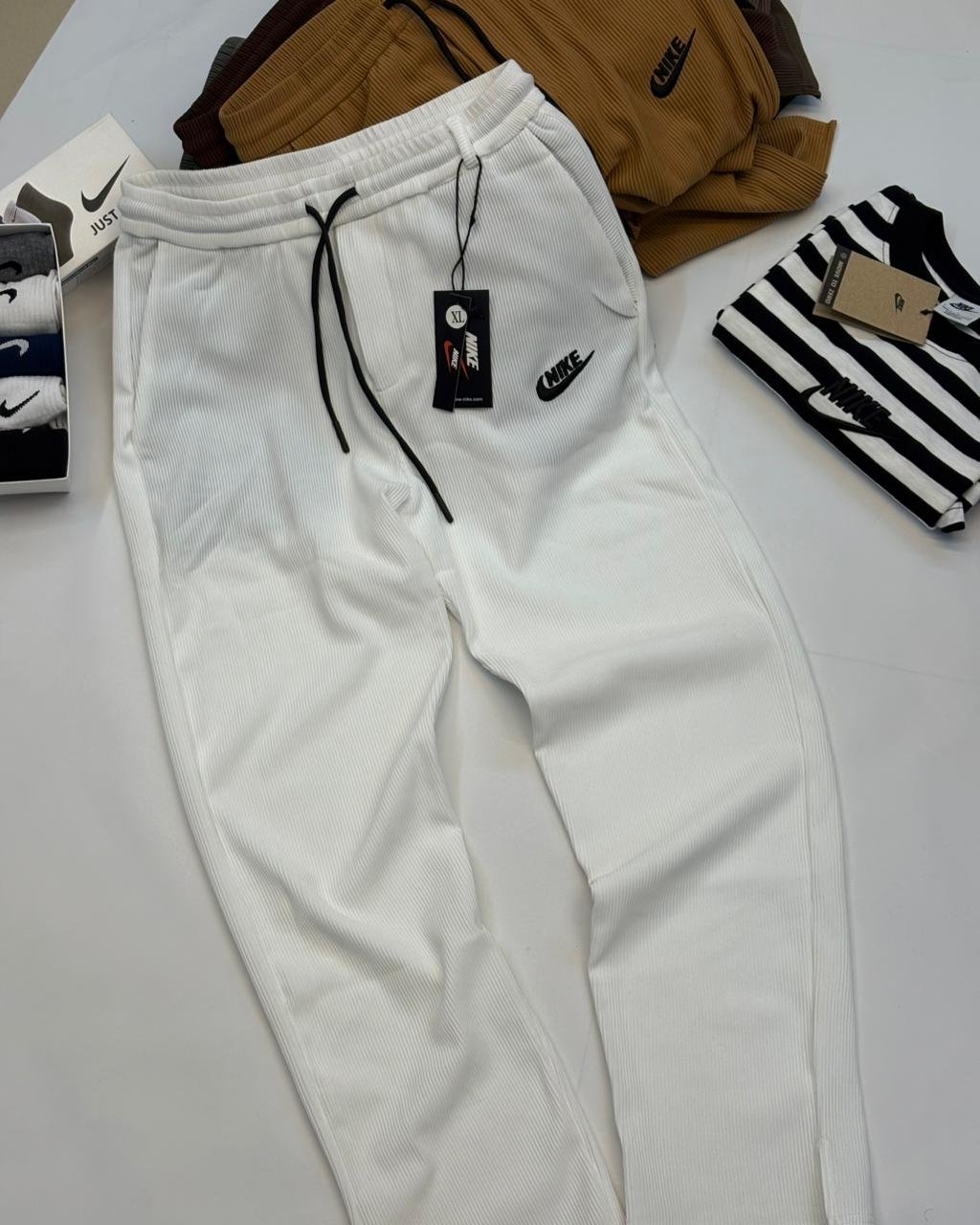 Step into comfort and style with our brand-new Nike Waffle trousers! Designed with a relaxed fit, adjustable waist, and drawstring closure, these trousers are made to move with you. A sleek back pocket adds that extra edge, making them practical yet effortlessly stylish. Perfect for any season, any occasion, and any place you go. Available in 5 versatile colours – Black, White, Grey, Latte, and Biscotti – and in a full range of sizes — M, L and XL. All this at just BDT 900.