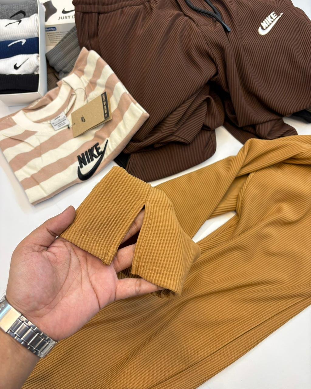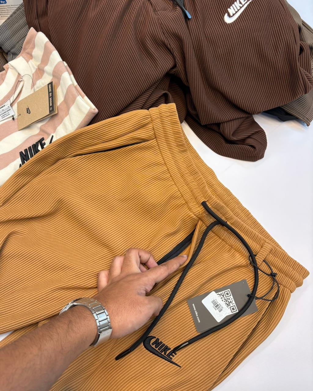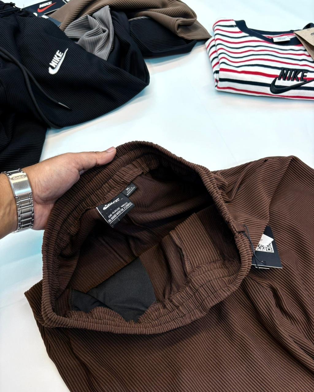 Step into comfort and style with our brand-new Nike Waffle trousers! Designed with a relaxed fit, adjustable waist, and drawstring closure, these trousers are made to move with you. A sleek back pocket adds that extra edge, making them practical yet effortlessly stylish. Perfect for any season, any occasion, and any place you go. Available in 5 versatile colours – Black, White, Grey, Latte, and Biscotti – and in a full range of sizes — M, L and XL. All this at just BDT 900.