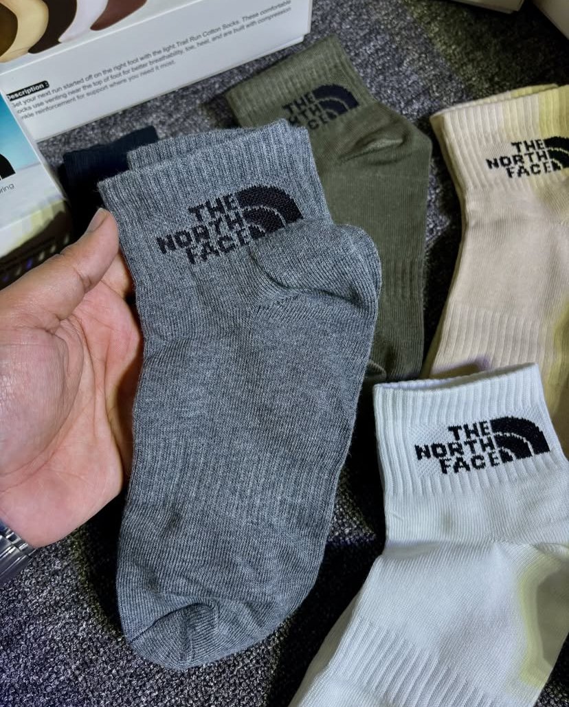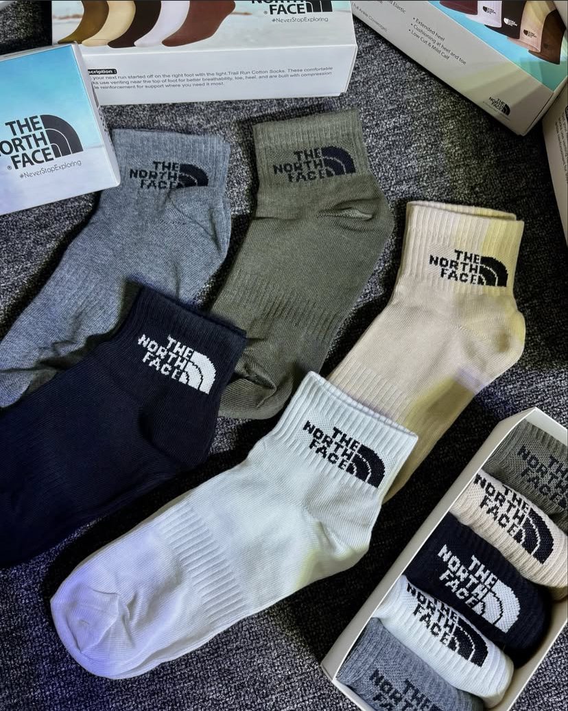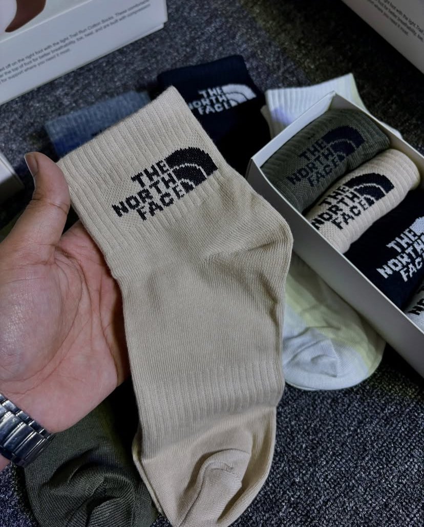 Step into ultimate comfort with the Northface Socks, designed from soft, breathable cotton fabric for all-day wear. Perfectly crafted to provide a snug yet gentle fit, these socks keep your feet fresh and cozy through every step. Each box comes with 5 premium pairs, offering a versatile mix of colors — Grey, Olive, Biscuit, Black, and White — to match any outfit or occasion. With a free size design, they ensure a comfortable fit for everyone. A true everyday essential, Northface Socks bring together quality, durability, and unmatched softness.
