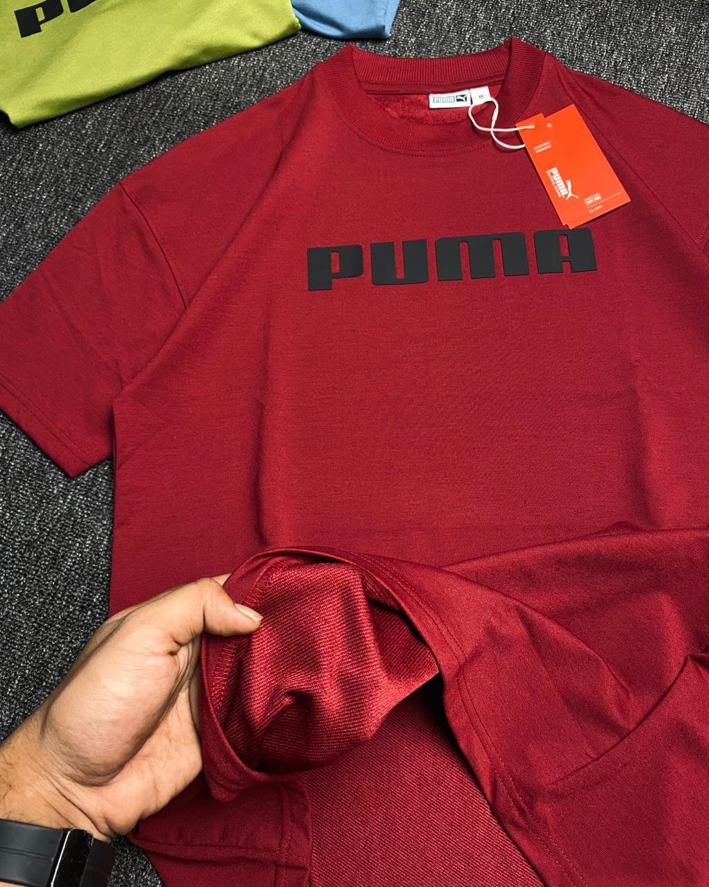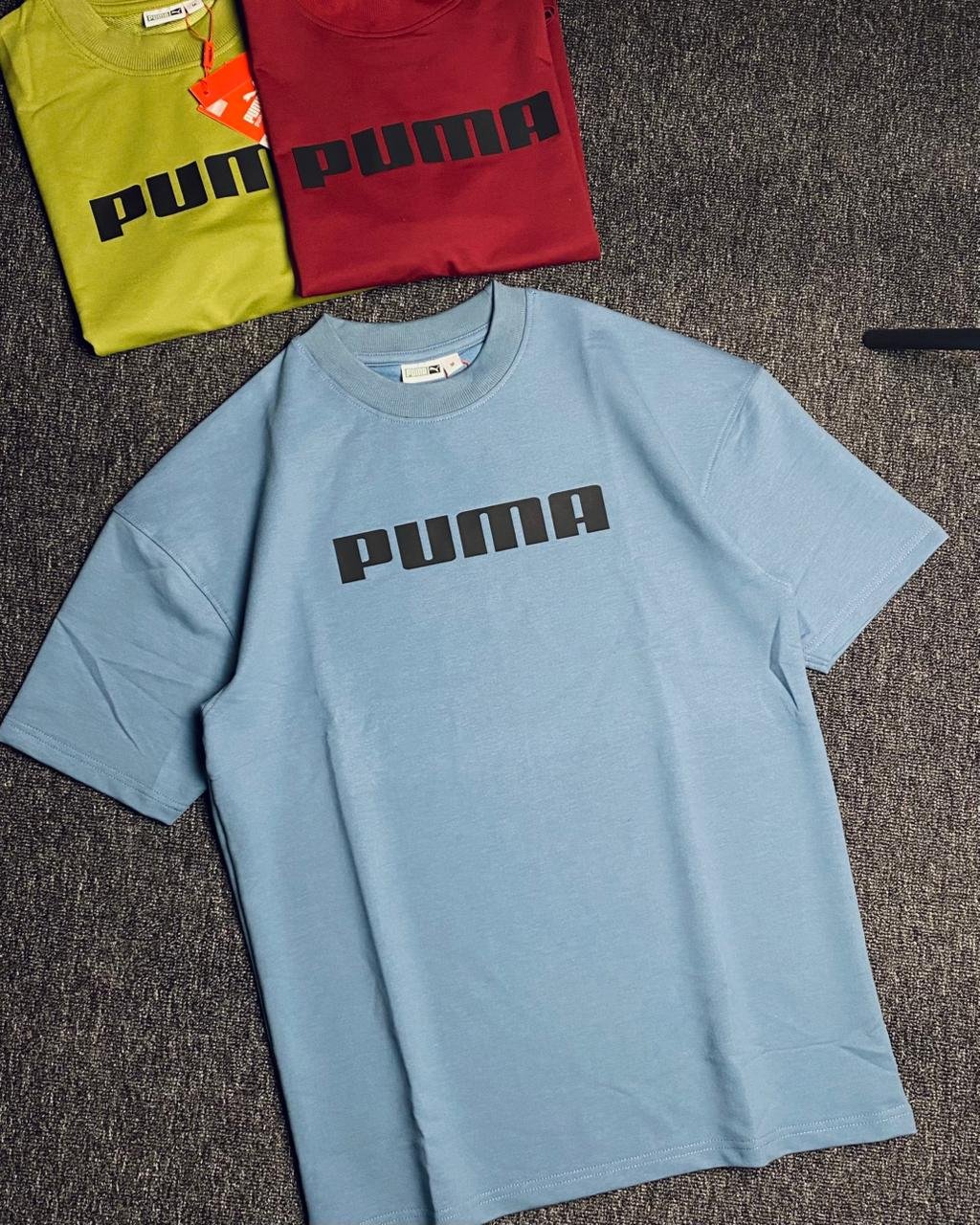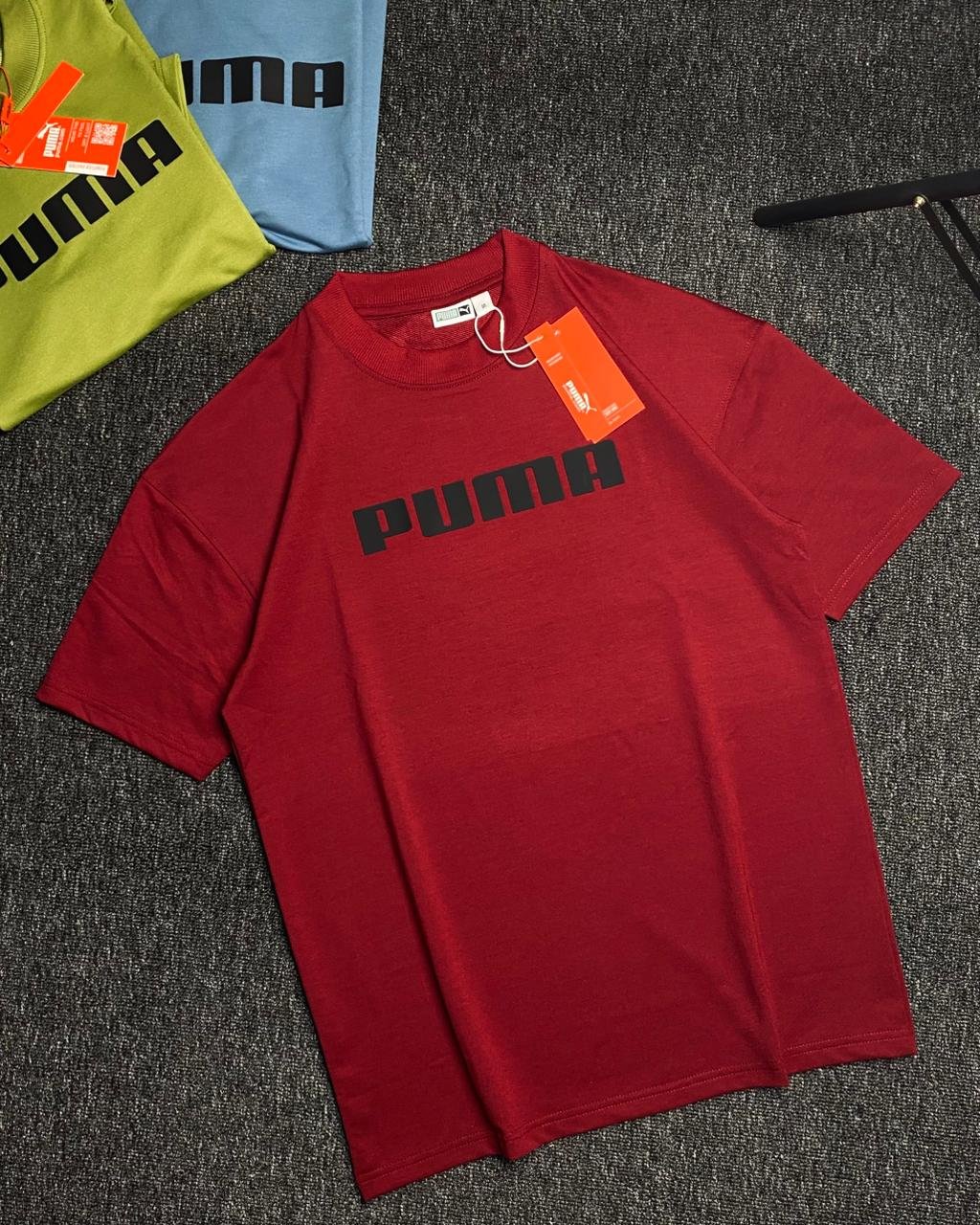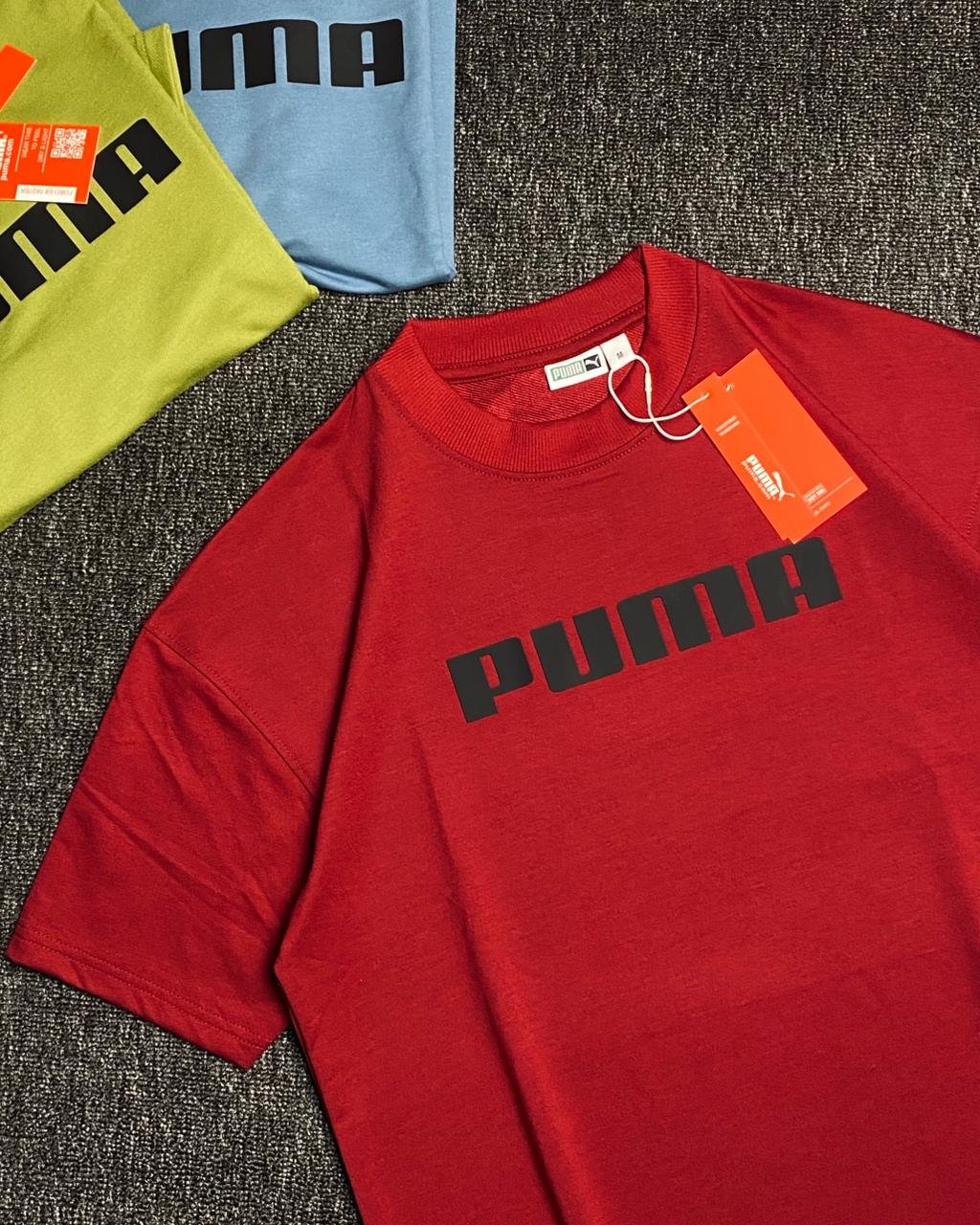 Brand: PUMA Design: Bold front PUMA logo print Fit: Relaxed / Oversized fit Neck: Classic round neck (crew neck) Sleeves: Half sleeve Fabric: Soft and breathable cotton fabric (comfortable for daily wear)